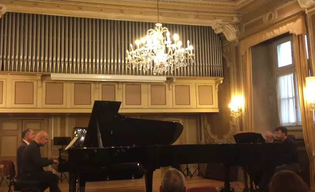 Già ai tempi della nostra adolescenza era un talento e andava, oltre che da insegnanti privati, anche al conservatorio. E a casa, da solo, erano ore e ore di duro, continuo, esercizio. Poi succede – è successo pure a me con la pittura e con la grafica – di abbandonare tutto e di imboccare altre strade. Io ho preso quella del giornalismo, del teatro, della scrittura, di un’altra arte, non appuntata inizialmente nel copione del mio destino. Lui, Alessandro, si è iscritto, laureandosi, in Lingue Straniere e dopo alcune attività di traduttore in Europa si è stabilito nel nord del nord, tra le Alpi, dove insegna quello che ha studiato all’Università di Palermo (beati i suoi studenti!).